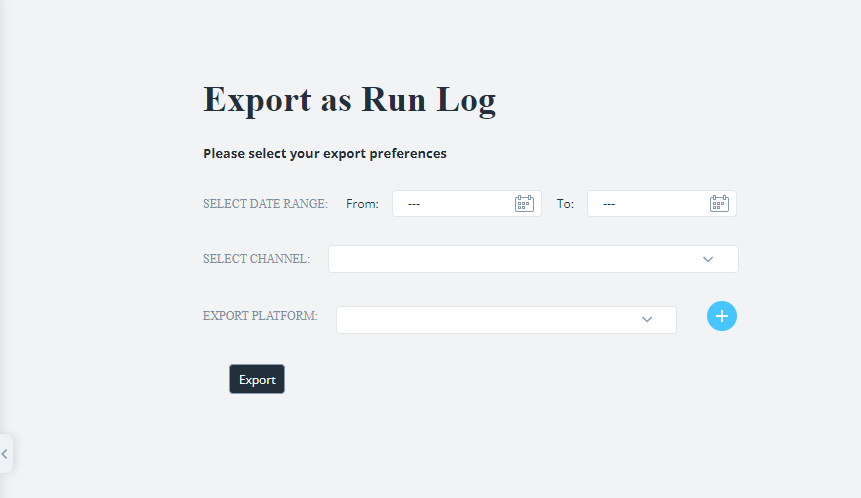 To export an As-Run log, go to the menu located on the top-left, select "Export," there, select "Export As-Run Log."
