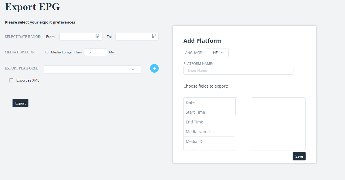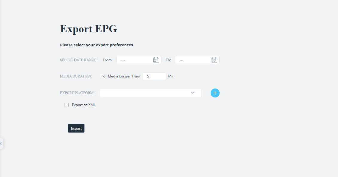 - Media Duration - define which media items will be exported to the EPG according to the length of the item; this will allow you to exclude short items such as promo's, idents, and ads from the EPG report.