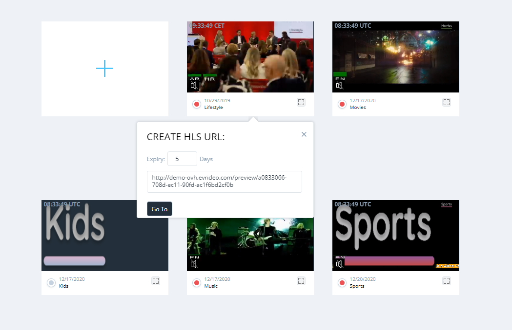 once the link is created, click 'Go To' to open a new tab with the HLS link preview