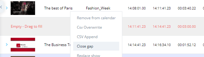 - Remove from calendar - Remove the selected item from the schedule; when performing this action, a gap will appear on the schedule.
